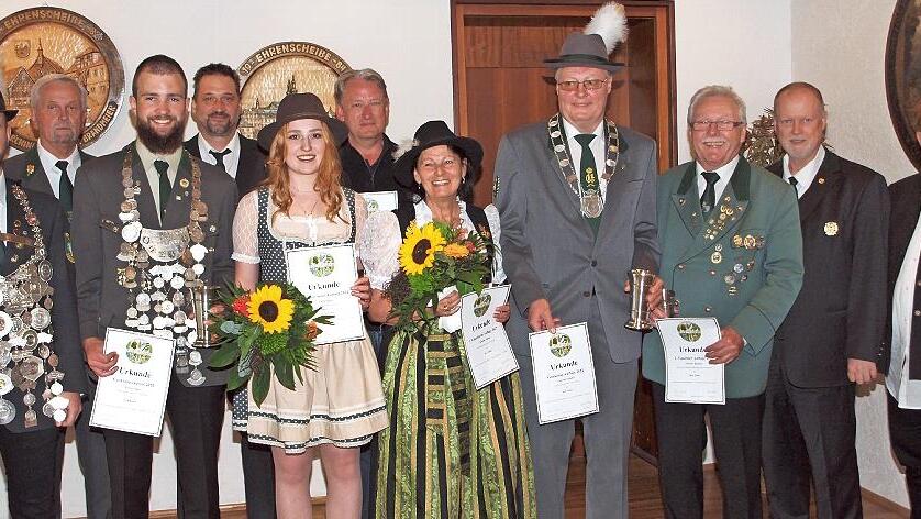 Großes Gauehrenzeichen: Hans-Ulrich Kratschmann (SG Rodach). Bezirk Gold: Claudia Kober (SG Schney), Wolfgang Heinze (SV Rottenbach), Sascha Graßmuck ( SG Neuensorg ), BSSB Klein-Rot: Harald Scherbel (KK-SV Förtschendorf), Simone Jäkel (Gauschriftführerin).