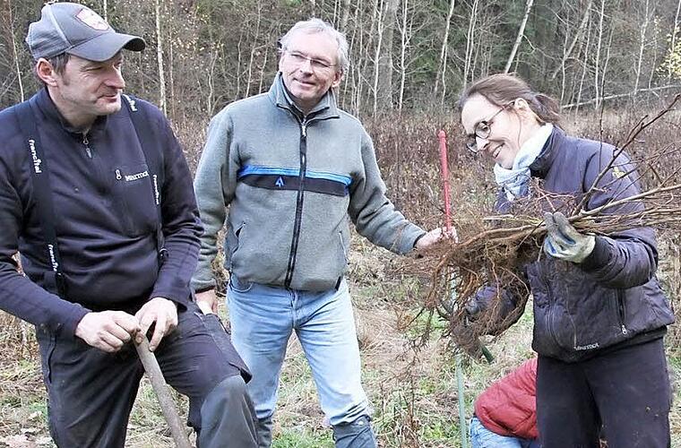 Hallerndorf — "Die Laubbäume sind für diesen Standort ideal, weil die Waldwiese aufgrund des dortigen Stauwassers beste Bedingungen bietet", erklärt Förster Matthias Jessen, der die Pflanzaktion von 800 Schwarzerlen fachmännisch begleitete. Auf rund 2500 Quadratmetern wurden die Pflanzen von Hand mit speziellen Spaten eingesetzt.