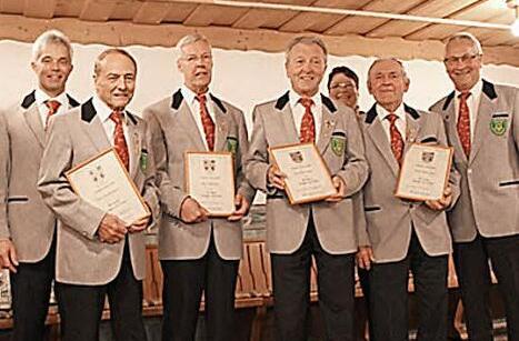 Für 50 Jahre mit der goldenen Vereinsnadel: Erwin Bögelein, Arthur Büttner, Peter Danke, Dieter Kieke, Josef Kraus, Oswald Mauser, Hans Meßbacher, Hilmar Saam . Für 60 Jahre mit der goldenen Vereinsnadel: Fridolin Lang, Leonhard Saam, Willi Saam. Oswald Mauser wurde zum Ehrenmitglied ernannt.