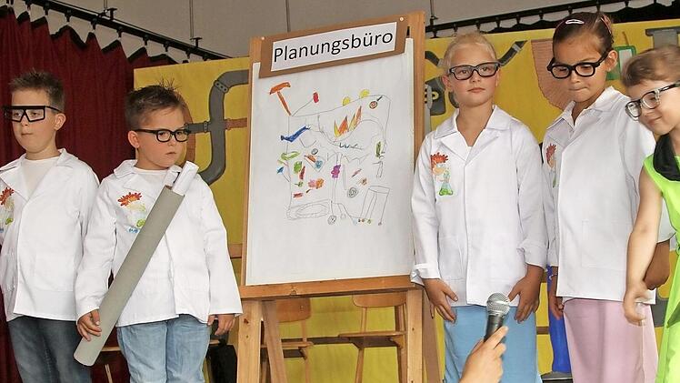 "Hier werden Maschinen hergestellt - die verrücktesten Maschinen der ganzen Welt. Unsere Fabrik heißt VfMb - verrückter fränkischer Maschinenbau. Verrückt sind nur die Maschinen, aber die Leute sind schlau." Mit diesen Worten öffneten die Buben und Mädchen die Fabriktore und gaben den "Blick in die Fabrik" frei beim Sommerfest des Limbacher Kindergartens. Leiterin Elle Steinhäuser gestand vor den Eltern und weiteren Besuchern, die Erziehrinnen hätten nicht geglaubt, dass die Arbeitswelt in der Fabrik einmal Thema eines Sommerfestes werden könnte. "Aber die Kinder waren mit solch einer Begeisterung dabei und lieferten so tolle Ideen..." Die Buben und Mädchen schlüpften in die Rollen von Wachmann, Sekretärin, Ingenieur, Planer - und Chef. Im Pfarrsaal hörte man dann auch die Maschinengeräusche und den Tanz der Roboter: "Mit einer Batterie kann ich hüpfen, hoch wie nie. Ist die Batterie halb leer, wackle ich noch hin und her." Die Vorsitzende des Kindergartenvereins, Birgit Scholl, zollte den Kindern, Erzieherinnen und allen Helfern ein großes Lob für die Leistung. Foto: Günther Geiling