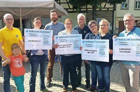 1111 Euro erhielt zunächst die Lebenshilfe Forchheim für das Ausrichten einer Behindertenfreizeit auf Burg Feuerstein; die Spendenübergabe erfolgte an Wolfgang Badura (Werkstattleiter der Lebenshilfe Forchheim). Der Wünschewagen Franken des Arbeitersamariterbundes (ASB) Forchheim erfüllt Schwerstkranken und Menschen, die am Ende ihres Lebensweges stehen, letzte Wünsche. Die Christuskirche Forchheim kümmert sich um sozial benachteiligte Kinder und Jugendliche in Forchheim-Nord. Für eine Abenteuerfreizeit in den Pfingstferien und für die Ausbildung von Jugendmitarbeitern, die sich um andere Jugendliche kümmern, wurde die Spende an Diakonin Beate Wagner übergeben.