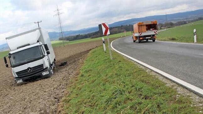 Ein 52-jähriger Lastwagenfahrer aus der Pfalz war am Donnerstagvormittag von Oberbrunn in Richtung Birkach unterwegs. Gegen 11 Uhr verlor er nach Angaben der Polizei wohl wegen überhöhter Geschwindigkeit in einer Kurve vor Birkach die Kontrolle über seinen 7,5-Tonner. Der Lkw landete in einem angrenzenden Acker. Der Fahrer wurde nicht verletzt. Den Schaden am Lastwagen schätzt die Polizei auf 5000 Euro.   Foto: Matthias Einwag