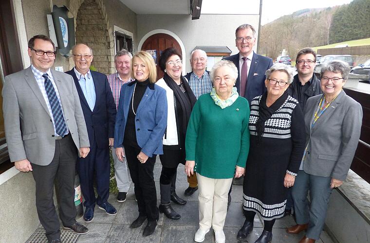 Mit 69 Personen war die Weihnachtsfeier des VdK-Ortsverbandes Stadtsteinach im Gasthof "Frankenwald" der Familie Spindler zu Unterzaubach sehr gut besucht. Im Vordergrund stand der Dank an acht Mitglieder, die dem Sozialverband bereits viele Jahre die Treue halten und sich ehrenamtlich engagieren. Irma Hildner trat dem VdK vor 30 Jahren bei, Brigitte Hildner ist seit 25 Jahren dabei. Für jeweils zehnjährige Mitgliedschaft wurden Ingrid Bayer, Hermine Harten, Michael Glaß, Christina Müller und Siegmund Worm ausgezeichnet. Dank galt dem stellvertretenden Ortsvorsitzenden Peter Gleich für zehn Jahre Mitarbeit im Ortsverband Stadtsteinach. Die Ehrennadel und Urkunden überreichten gemeinsam die VdK-Kreis- und Bezirksfrau Brigitte Kellner, Ortsvorsitzender Harald Fraas und Stadtsteinachs Bürgermeister Roland Wolfrum.
