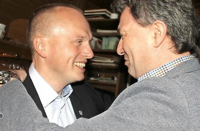 Seine Mitbewerber Peter Grüdl (SPD) und Uwe Zipfel (FW) überbrachten ihre Glückwünsche. "Die Entscheidung ist gefallen, wir werden weiterhin für unsere Bürger an einem Strang ziehen", so Peter Grüdl, der zusammen mit Ehefrau Kerstin schon nach wenigen Minuten gratulierte. Auch Grüdl, der 30,88 Prozent erreichte, räumte ein, "ein Nickerchen" gehalten zu haben. Allerdings verbrachte er den Tag in der Sauna. Das sei ideal gewesen, der Anspannung wegen, meinte er schmunzelnd.