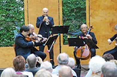 Unterleinleiter — Zusammen mit dem 1. Solotrompeter der Bamberger Symphoniker, Lutz Randow, hat das Bamberger Streichquartett bei einem Konzert der Extraklasse im Schlosspark zu Unterleinleiter brilliert.