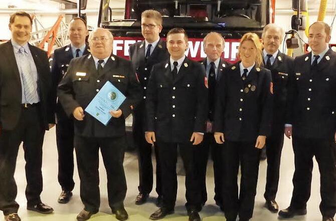 Für sein 50-jähriges Engagement und den großartigen Einsatz im Brand- und Katastrophenschutz dankte Vorsitzender Hans-Jürgen Hempfling dem Ehrenkreisbrandmeister Georg Geyer mit einer schmucken Urkunde und Ehrennadel. Für 60 Jahre Mitgliedschaft sollte Werner Neumann geehrt werden, er konnte aber an der Versammlung nicht teilnehmen.