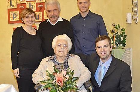 Lange Jahre war Margarete Beez in einer Taschennäherei als Zuschneiderin beschäftigt. 1952 schloss sie mit Ehemann Franz Beez den Bund der Ehe. Durch einen Arbeitsunfall verlor sie ihren Gatten 1978. Neben Sohn Georg Beez zählen heute die zwei Enkel Carolin und Jonas zum engsten Familienkreis. Ein Urenkel hat sich für Februar angekündigt. Zum großen Gratulantenkreis zählte auch Dritter Bürgermeister Markus Wich (CSU).