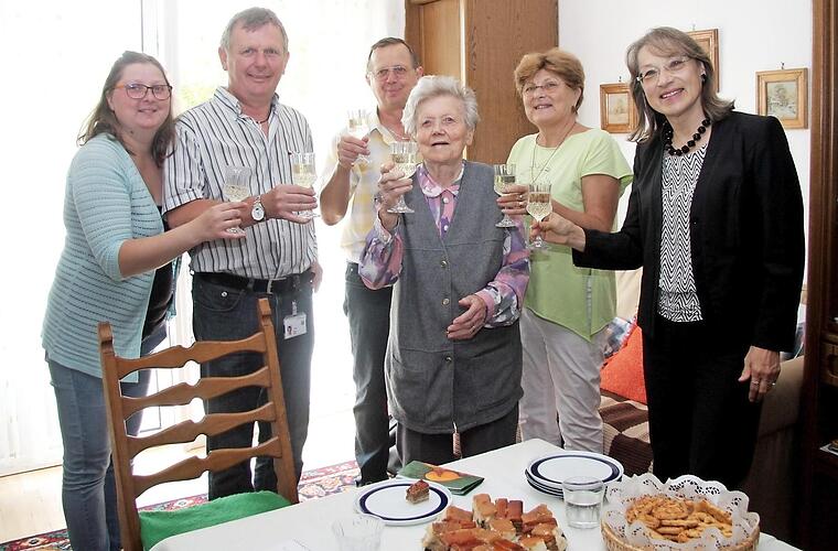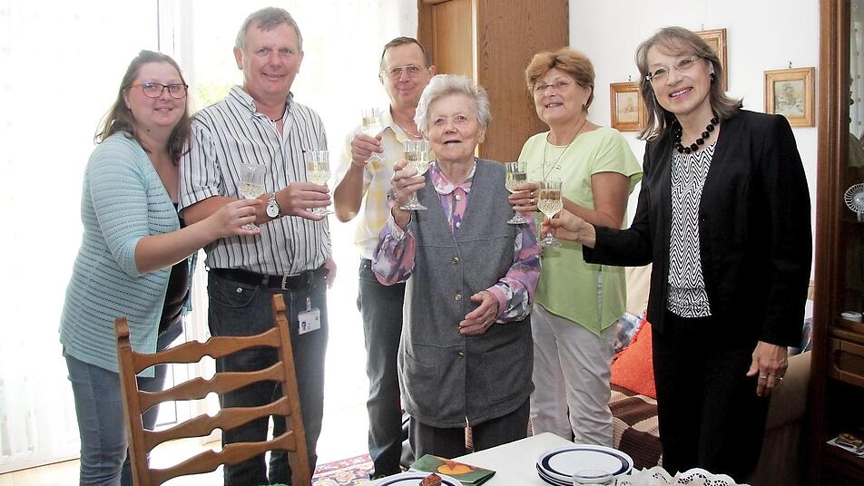 Die gut gelaunte Maria Hutter wohnt jetzt in einer seniorengerechten Wohnung an der Würzburger Straße. "Mir gefällt es hier, aber ich höre nicht mehr so gut. Ich freue mich auf den Besuch meiner Enkel", erzählte sie voller Vorfreude und animierte die Besucher, ihre aufgetischten Köstlichkeiten zu essen. Die ließen sich auch Pfarrerin Andrea Schäfer und Zweite Bürgermeister Renate Schroff (SPD) nicht entgehen, die im Namen der Stadt gratulierte.