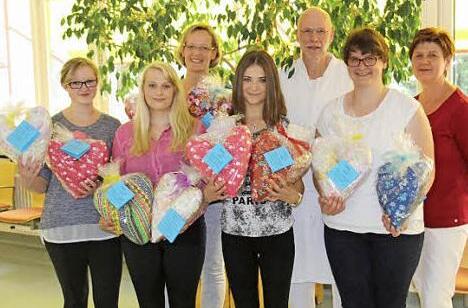 25 Herzkissen übergaben jetzt Schülerinnen der Coburger Berufsfachschule für Ernährung und Versorgung an den Chefarzt der Frauenklinik im Klinikum Coburg, D...