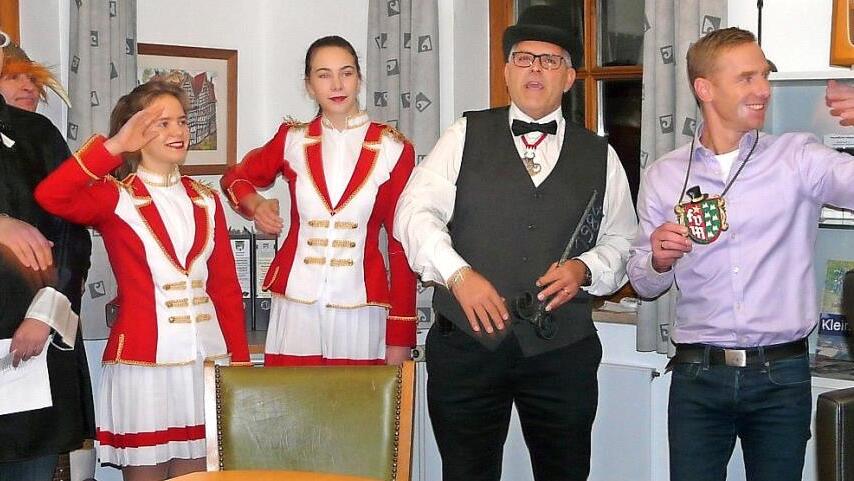 Mit Gitarrenklängen zog die Faschingsvereinigung Meeder (FVM) in das Rathaus ein und übernahm die Schlüsselgewalt für 107 Tage. Ohne Widerstand übergab Bürgermeister Bernd Höfer den Schlüssel an den Sitzungspräsidenten Heiko Meyer.