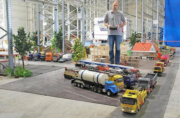 Sohn fährt gerne Lkw Der zwölfjährige Nick, der seinen Vater beim Bau schon unterstützt, hat Freude daran, große Lkw zu fahren. "Im Vergleich zu den richtigen Trucks haben unsere Modelle, maßstabsgerecht heruntergerechnet, eine höhere Leistung", erklärt Katzenberger. Er verweist darauf, dass die Modelle über eine echte Hydraulik verfügen und aus Blech gebaut sind. Neben großen Trucks gibt es auch Nachbauten aus dem Umfeld. So findet sich ein Abschleppwagen vom "Abschleppdienst Katzenberger" unter den Modellen oder ein Lkw von "Heidelberger Zement". Und was sagt seine Frau zum Hobby der Familie? "Meine Frau ist Fuhrparkleiter, Disponentin und Geldgeberin", sagt Katzenberger und schmunzelt schon wieder.