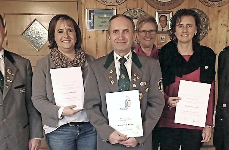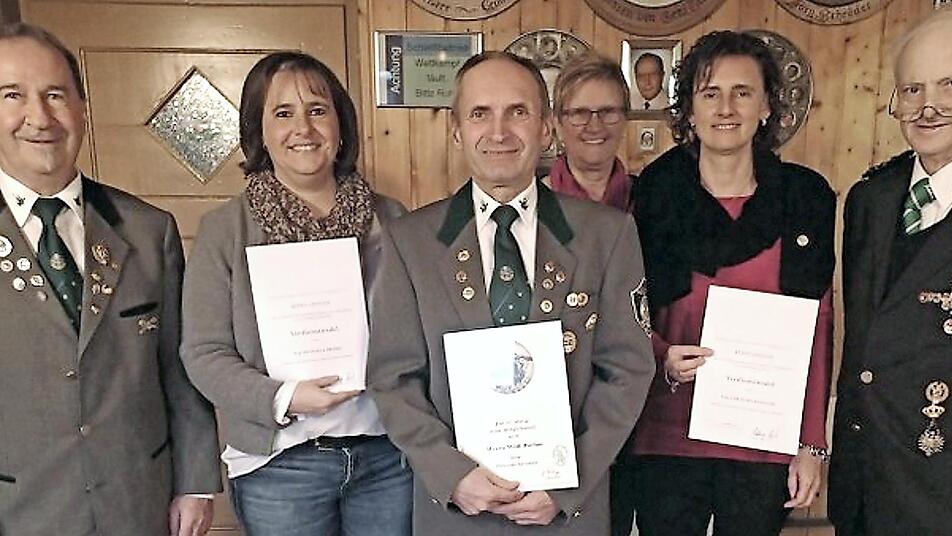 Als Höhepunkt der Versammlung wurden Mitglieder geehrt Für 50 Jahre Mitgliedschaft bekam Willi Brehm eine Auszeichnung. Das Besitz-Zeugnis mit Verdienstnadel vom BSSB in Anerkennung für treue Mitarbeit erhielten Michaela Brehm und Christine Hertlein.