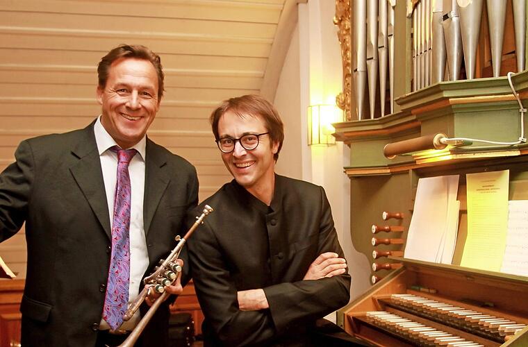 Schon zum Auftakt bei einem Werk von Händel wurden die mitreißende Virtuosität und Spielfreude der beiden Künstler deutlich. Das Zusammenspiel des Trompetenvirtuosen Markus Mester und des "Echo"-Preisträgers Christian Schmitt auf der kleinen Orgel von Glei-senau hätte nicht besser aufeinander abgestimmt werden können, als sie es taten.
