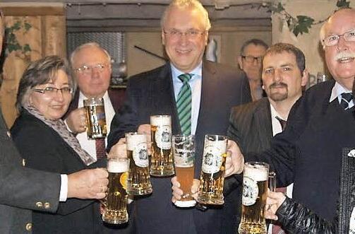 Pottenstein den offiziellen Antrag für das Prädikat "Ort mit Heilstollen-Kurbetrieb" stellen. "Die Frau Haberberger ist extrem hartnäckig", sagte Herrmann über die Pottensteiner CSU-Ortsvorsitzende Birgit Haberberger, die Herrmann zu dem Stärkeantrinken der Pottensteiner CSU eingeladen hatte. Zwölf Seidla, für jeden Monat eins, wie Haberberger das Stärkeantrinken auslegte, das schaffte dann auch Herrmann an diesem Abend nicht.