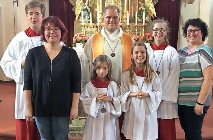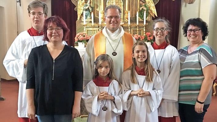 Unter dem Motto "Ein Garten voller Leben" wurden bei einem Familiengottesdienst in der Pfarrkirche St. Laurentius durch Dekan Pfarrer Lars Rebhan Sina Schmidt und Romy Thierauf in die Ministrantenschar aufgenommen. Den beiden Mädchen und ihren Müttern wurde Rosenpflanzen für den Garten überreicht, die sie nun gemeinsam pflanzen und pflegen dürfen. "Ministrantendienst bedeutet auch, sich in die Pflicht zu nehmen. Pünktlich sein, auch wenn man lieber ausschlafen möchte, ministrieren, auch wenn andere noch im Schwimmbad sind, und vieles mehr. Eine Rose hat auch Dornen. Damit kann die Pflicht verglichen werden", sagte Pfarrer Rebhan.