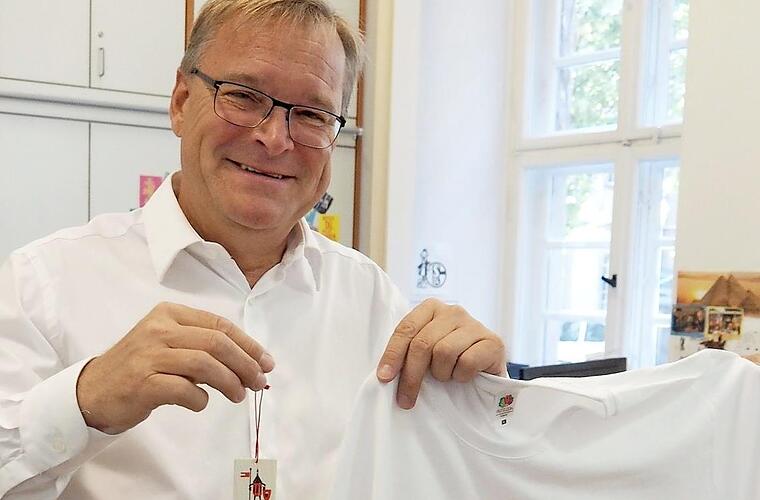 Bamberg. Nach dem Ausfall im vergangenen Jahr freut sich auch Oberbürgermeister Andreas Starke (SPD), dass ein Stück Bamberg gerettet wurde. Als einer der Ersten kaufte er an der Infothek im Rathaus Maxplatz das exklusive Sandkerwa-Retter-T-Shirt und das diesjährige Festabzeichen.