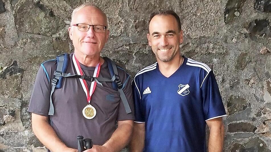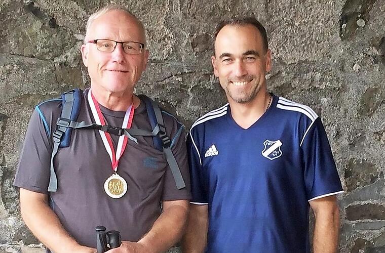 Für fünfzehnmalige Teilnahme an der Kreuzbergwanderung wurde Werner Schmitt vom 1.Vorsitzenden Holger Schmitt bei der Wanderung mit einer Medaille geehrt. red