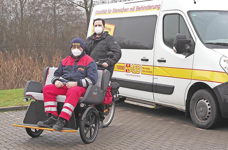 Der Arbeiter-Samariter-Bund Coburg hat seinen Fuhrpark erweitert: Eine Fahrrad-Rikscha steht seit wenigen Tagen in der großen Fahrzeughalle neben den vielen Kleinbussen und ASB-Autos. "Die Idee hinter der Rikscha ist, Senioren und Menschen mit Behinderungen im Landkreis und der Stadt Coburg Fahrradausflüge zu ermöglichen", erklärt Andreas Bär vom Quartiersma-nagement des ASB in Weidach. Dazu werden in mehreren Gemeinden des Landkreises eine Reihe von "Piloten" ausgebildet, die dann das knapp 100 Kilogramm schwere Gefährt sicher über Radwege und Nebenstraßen steuern.