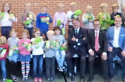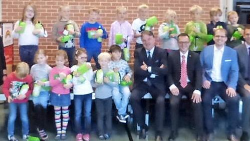 Alle Jahre wieder erhalten alle Erstklässler im Landkreis Kulmbach eine wiederverwendbare Emil-Trinkflasche und eine Brotzeitdose. Stellvertretend für alle Schulen fand die offizielle Übergabe diesmal in Melkendorf statt.