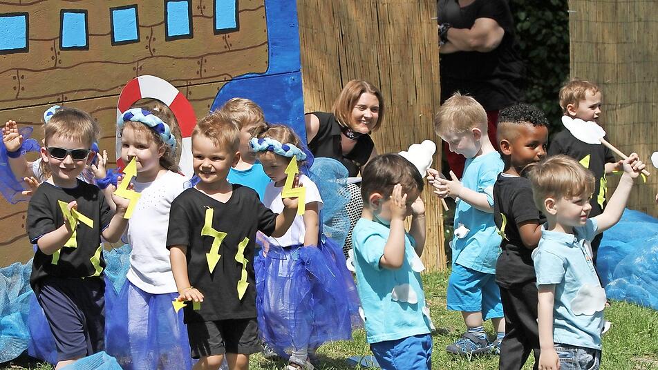 Auf große Seefahrt mit "Käpten Schisshose" gingen die Besucher des Sommerfestes im Kindergarten Weisbrunn. Idyllisch lag dabei das Schiff im Heimathafen und...