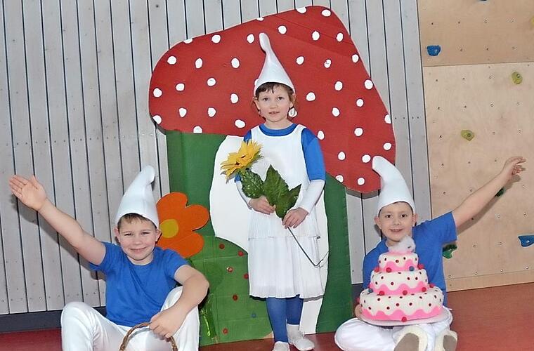 Auch die Oma von Max, Elisabeth Ruß, gestaltet Kostüme und Requisiten mit. Sie hat im vergangenen Jahr zum Beispiel die kunstvolle Torte der Schlümpfe oder die Schlumpfbeeren gefertigt. Susanne, die Mutter von Max, ließ sich die Sketche einfallen und brachte sie zu Papier.