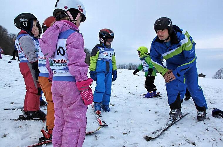 Zum ersten Mal in dieser Saison ist der kleine Skilift am Staffelberg in Betrieb. Für Kinder gibt es Skikurse der Staffelsteiner "Naturfreunde". Jürgen Paul und Florian Wagner zeigten den Knirpsen, wie sie sich sicher auf Skiern bewegen.