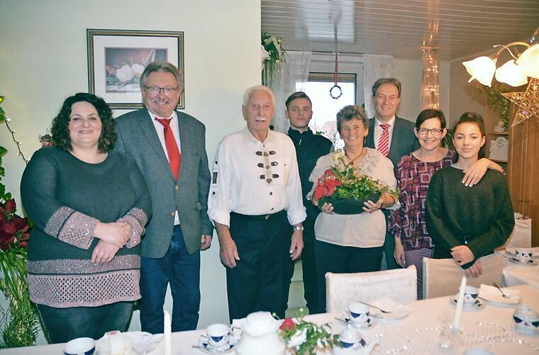 Große Freude herrschte, als Landrat Klaus Löffler und Bürgermeister Hans Pietz dem Jubelpaar persönlich ihre Glückwünsche aussprachen. Sie dankten den rüstigen und agilen Ehepartnern für ihr jahrzehntelanges Mitwirken an der Gemeinschaft im Landkreis Kronach und Markt Pressig. Sechs Jahrzehnte die Treue als Ehepartner zu halten und dabei gemeinsam Sorgen und Nöte, Freude und Leid geteilt zu haben, sei ein großer Wert und ein Vorbild für die Gesellschaft, was längst nicht mehr selbstverständlich ist, betonten sie. eh