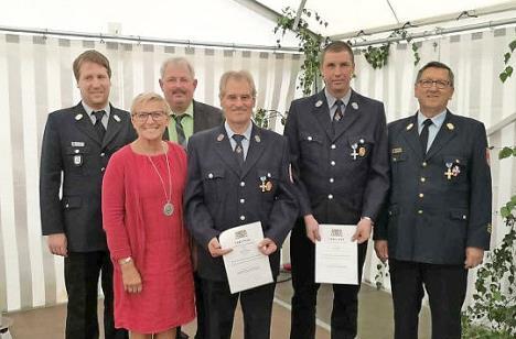 Für 40 Dienstjahre wurden Reiner Hofmann (FFW Bieberbach) und Martin Hübschmann (FFW Affalterthal) geehrt. Für 25 Dienstjahre wurden Bernd Reiser, Frank Schüpferling, Thomas Hofmann, Jürgen Reichold und Martin Hübschmann (alle FFW Affalterthal) geehrt. Es folgte ein Familiennachmittag, auf dem die Freiwillige Feuerwehr Egloffstein eine Schauübung Technische Hilfeleistung veranstaltete. red