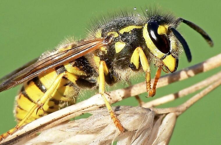 Klappt das nicht, ist es wichtig die Ruhe zu bewahren, wenn einem Wespen zu nahe kommen. Hektische oder panische Bewegungen sollten in der Nähe der gelb-schwarz-gestreiften Tiefflieger vermieden werden. "Die Wespe auf keinen Fall wegpusten, denn das Kohlendioxid in der Atemluft ist ein Alarmsignal für die Tiere und versetzt sie in Angriffsstimmung", erklärt Erlwein. Eine wirksame Methode, um Zwischenfälle mit Wespen zu vermeiden ist es, das Insekt mit zerstäubtem Wasser zu besprühen. "Die Wespe denkt, es finge an zu regnen und wird zurück in ihr Nest flüchten." Außerdem reagieren Wespen bei der Nahrungssuche normalerweise nicht aggressiv. Sie wehren sich erst, wenn sie sich bedroht fühlen.
