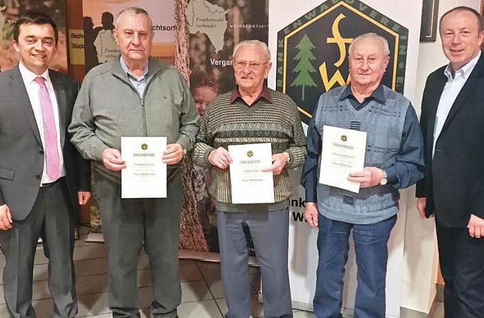 Auf der Jahresversammlung der Wallenfelser Ortsgruppe für 40-jährige Mitgliedschaft geehrt wurden Elfriede Göppner, Alfred Lauterbach, Hans Lauterbach, Fritz Reischl, Gerd Schauer, Bernhard Schlee, Elmar Schlee und Anton Zeuß. Auf 25-jährige Mitgliedschaft beim Frankenwaldverein blicken können Uwe Andresen und Jutta Schlee.