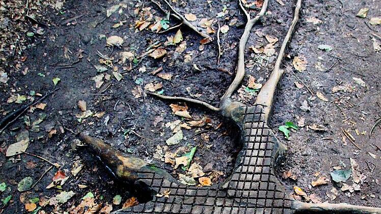 Leserfoto Bei einer Wanderung vom Infozentrum in Handthal zum Baumwipfelpfad nach Ebrach hat unsere Leserin Bernadette Muckelbauer diese Struktur fotografiert. Ihre Erklärung: "Auf den Wurzeln muss ein Lkw gestanden haben, damit sich das Reifenmuster so ins Holz einprägen konnte."