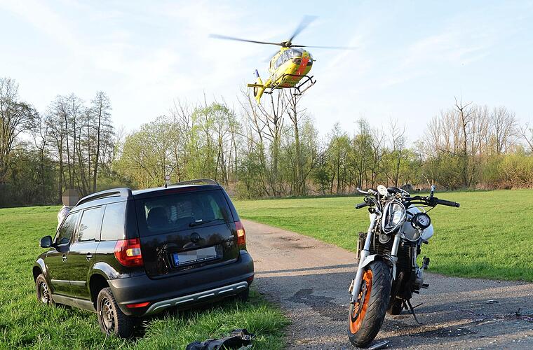 Ein 65-jähriger Skoda-Fahrer bog hier nach rechts in einen Feldweg ab. Deshalb verringerte ein dahinter fahrender Autofahrer seine Geschwindigkeit. Dies bemerkte der Motorradfahrer zu spät und konnte nicht mehr rechtzeitig bremsen.