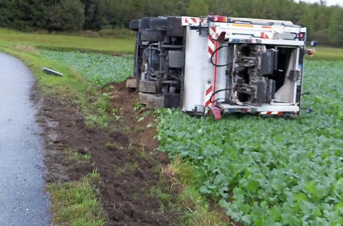 In der Folge rutschte das Müllfahrzeug in den angrenzenden Acker ab und kippte zur Seite um. Bei dem Unfall erlitt der Beifahrer leichte Verletzungen. Er musste in einem Krankenhaus ärztlich behandelt werden.