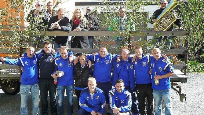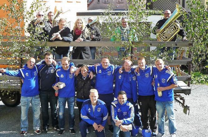 Marktleugast — Auch in der Oberlandgemeinde klang am Montag der Schlachtruf durch die Straßen: "Wer hat Kerwa? Mir ham Kerwa!" Die Aktiven des Musikvereins und die Fußballer des FC ließen es sich nicht nehmen, die Tradition des Kerwa-Rumspielens fortzusetzen. Auf einem geschmückten Traktor fuhren sie durch den Ort und spielten dazu mit zünftigen Weisen auf. Die von der Bevölkerung erhaltenene Spenden für einen Schluck aus dem Kerwa-Krug kommen wie alle Jahre der Nachwuchsarbeit zugute. Foto: Klaus-Peter Wulf