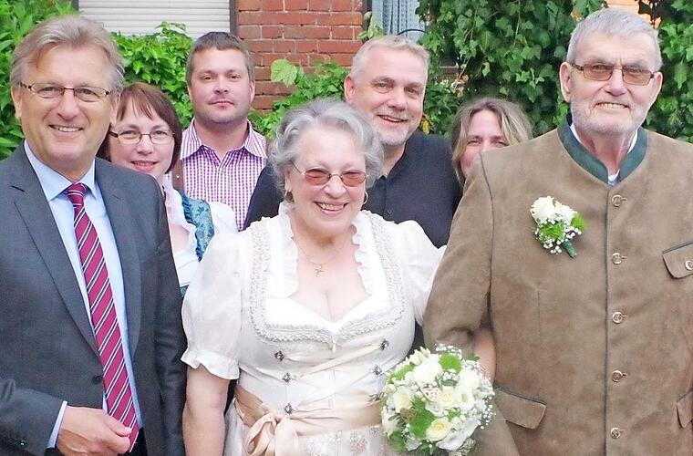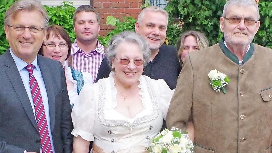 Am Donnerstag vollzog Pfarrer Michael Foltin in der Pfarrkirche St. Laurentius die kirchliche Hochzeit. Bis dato waren die Schramms standesamtlich vermählt. Die Glückwünsche der Gemeinde Stockheim überbrachte Bürgermeister Rainer Detsch, der auch im Auftrag von Landrat Löffler gratulierte.