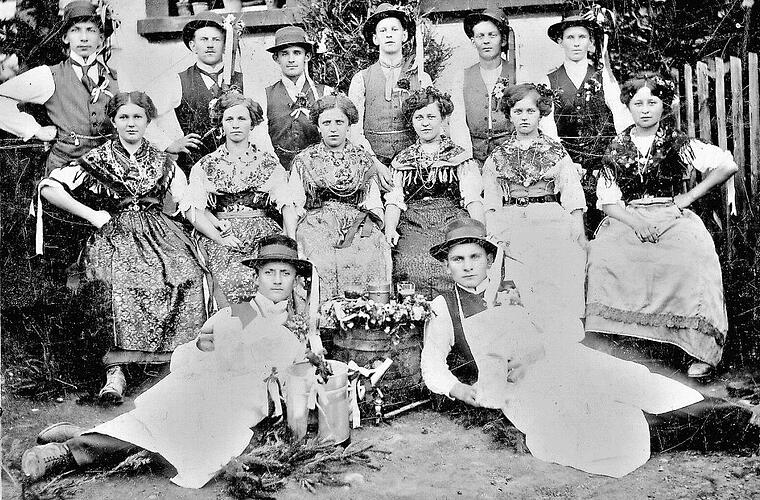 Dass der alte, schöne Brauch des "Planbeziehens" auch in der Kerngemeinde Stockheim gang und gäbe war, ist längst in Vergessenheit geraten. Ein uraltes Bild einer Kirchweihgesellschaft aus dem Jahre 1913 - von Wolfgang Sikora aus Kronach zur Verfügung gestellt - erinnert an dieses Ritual. Beim Blättern alter Zeitungsbände ergaben sich interessante Details zur Stockheimer Kirchweih.