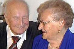 Die Eheleute drückten schon in der gleichen Klasse die Schulbank. Als Hans - es war die Zeit der Wirtschaftskrise - in Duisburg eine Arbeit fand und der Heimat einen Besuch abstattete, hat es gefunkt. Im November 1954 wurde geheiratet. Zum Jubeltag gratulierten die Töchter Marlene, Claudia, Bettina und zwei Enkel.
