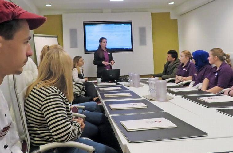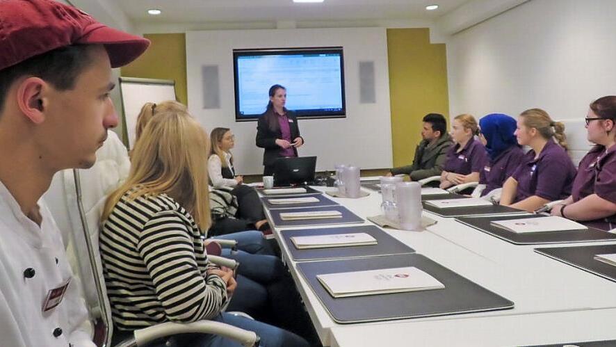 Planen, gestalten, organisieren - alle gemeinsam. Dazu treffen sie sich regelmäßig zum Gedankenaustausch, auch wenn einige dann gerade ihren freien Tag hätten. Projektleiterin Katharina Fischer freut sich: Junge Köche sitzen gemeinsam mit Hotelfach- und Hotelkaufleuten sowie Kosmetikazubis am sozusagen Runden Tisch, der eigentlich der kleine Tagungsraum "Erde" im Untergeschoss des Hotels ist.