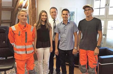 In folgenden Fachbereichen werden die jungen Kollegen ausgebildet: Seit 1. September stehen Luisa Schicker und Marvin Hilpert (beide Beamtenanwärter der 2. Qualifikationsebene) sowie Manuel Müller (Straßenanwärter) und Johannes Böhner (Garten- und Landschaftsbau) im Dienste der Stadt Kulmbach.