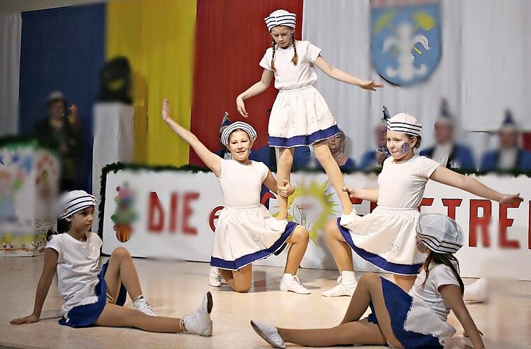 Auf die Bühne gesegelt kam dann auch die mittlere Garde, die da oben alles ordentlich durcheinanderwirbelte. Danach ein kurzer Szenenwechsel, und schon wurde die Tanzfläche zum Klassenzimmer. Hier gingen dann Jonas, Hans, Maria, Nathalie und Samira zur Schule und erklärten ihrem Lehrer, "Herrn Lang", wie die Welt funktioniert. Sie wussten, wohin die Frau bei einem Mann greift (natürlich in die Brieftasche) und warum Dorferneuerung nicht gleich Dorferneuerung ist. Ihr Unterricht in Geografie und Menschenkunde führte irgendwie auch auf die Reeperbahn nach Hamburg und nach Rothenkirchen.