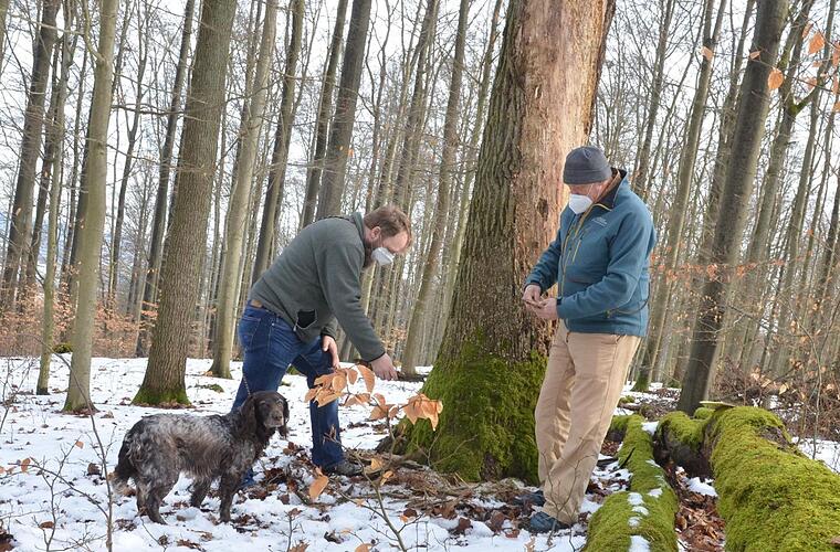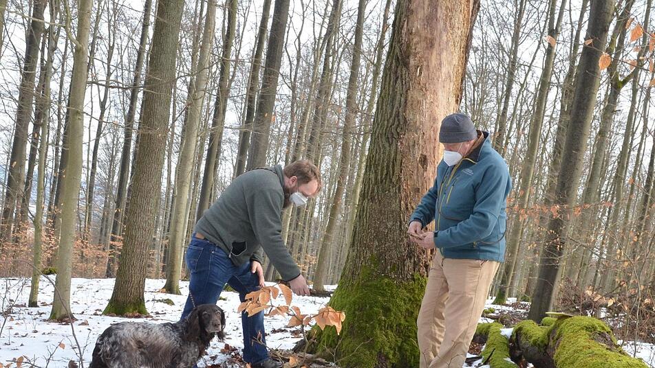 Große Eichen und Buchen teilen sich den Lebensraum an der so genannten Auwand im Callenberger Forst. Doch unter ihnen gibt es nur Nachkommen einer einzigen Baumart, der Buche. "Die Buche ist unsere dominanteste Baumart", sagt Christoph Hübner. Der Bereichsleiter Forsten am Amt für Ernährung, Landwirtschaft und Forsten (AELF), schaut sich zusammen mit Albert Schrenker, dem Leiter des Forstbetriebs Coburg der Bayerischen Staatsforsten (BaySF) in dem Waldgebiet um. Der Grund: Gemeinsam werden sie von jetzt an darauf achten, dass dort alles sich selbst überlassen bleibt.