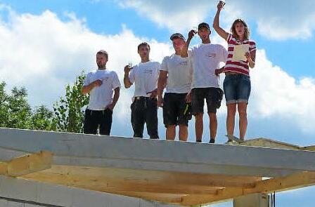 von unserem Mitarbeiter klaus-peter wulf Rugendorf — Nur drei Wochen nach dem Spatenstich wurde gestern Mittag das Richtfest des Neubaues der Arztpraxis in Rugendorf gefeiert. In W...