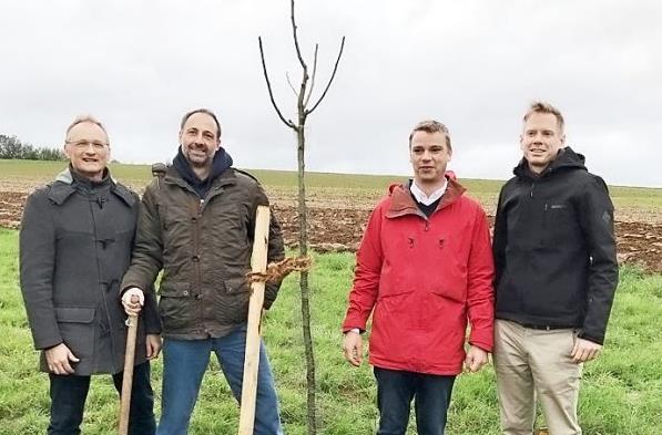 Ort des Geschehens war eine über vier Hektar große, landwirtschaftlich nicht genutzte Fläche am Solweg. Als Ausgleichsfläche ist sie Rückzugsgebiet für Flora und Fauna inmitten von intensiv genutzten , Getreide-, Mais- und Rübenäckern. Wie schon im letzten Jahr wurden für die Pflanzung ganz bewusst alte, regionale Sorten ausgewählt, auch die Resistenz gegen Trockenheit wurde berücksichtigt. Das extreme Wetter des zurückliegenden Sommers machte der Anpflanzung des letzten Jahres, die Fläche liegt an einem Südhang, sehr zu schaffen.