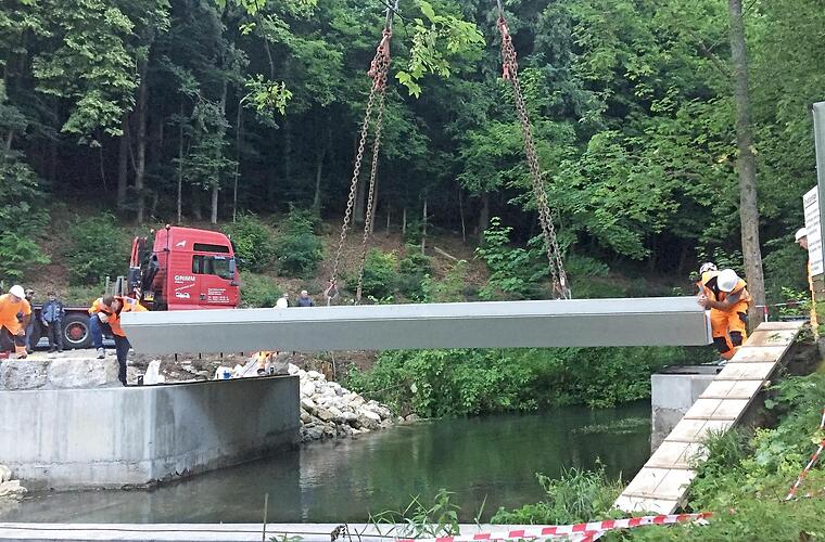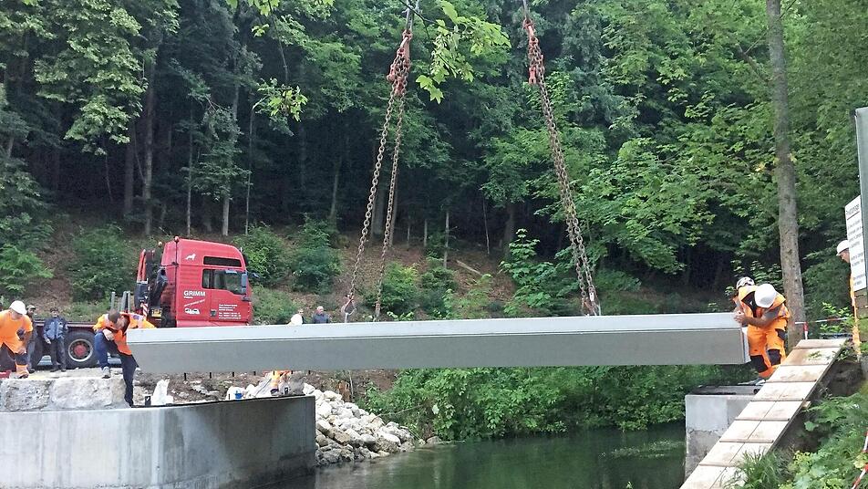 Ab Montag werden die Mitarbeiter des Stadtbauhofs Pottenstein die Widerlager mit Vergussbeton verfüllen und das Geländer montieren. Ab Mittwoch, 15. Juli, kann die Brücke dann wieder für den Verkehr freigegeben werden und die ersten Camper können wieder kommen.