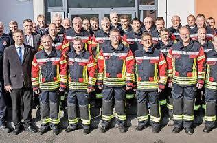 Bei dieser Übergabe waren auch die Kreisausbilder des Kreisfeuerwehrverbandes vertreten, die ihre ebenfalls neu beschaffte Teamkleidung übernehmen konnten.