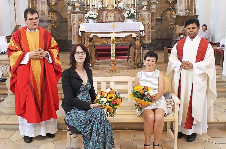 "Ich habe für drei Pfarrer gearbeitet: für Peter Brandl, Marcus Wolf und jetzt für Florian Stark", erzählt Johanna Götz und meint, dass jeder anders war. "Zwei hat sie aufgearbeitet, am Dritten war sie dran", scherzt Pfarrer Florian Stark.