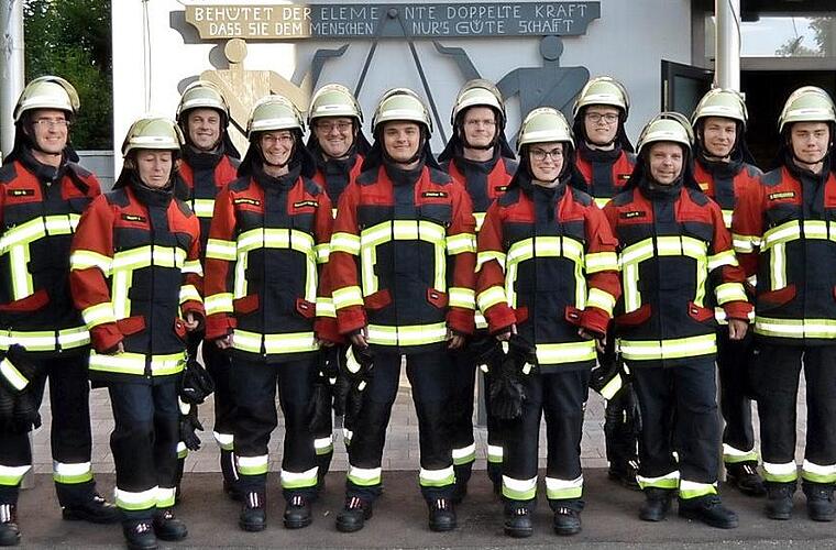 "Im Sommer werden wir schwitzen und im Winter nicht frieren!" So formulierten die neuen Feuerwehrmänner und -frauen ihre Eindrücke, als sie die Schutzjacken zum ersten Mal anprobierten. Die durch die "Löscheimer Aktion" im vergangenen Herbst neu hinzugewonnenen Mitglieder, die im Moment noch ihre Ausbildung durchlaufen, sind nun komplett und einheitlich ausgestattet.