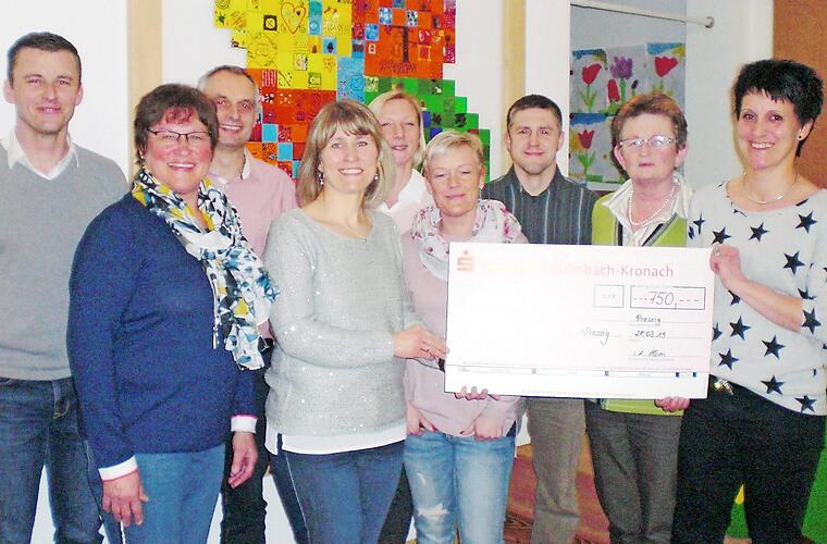 Der seit Anfang der 1970er Jahre bestehende Förderverein hat zurzeit noch 70 Mitglieder. Sie arbeiten eng mit dem Elternbeirat und der Kindergartenleitung zusammen. Eine der ersten Amtshandlungen der neuen Vorstandschaft war die Übergabe eines Schecks in Höhe von 750 Euro an die Kindergartenleitung, Ulla Übelacker und Maria Kotschenreuther. Der Betrag ist für die Anschaffung eines neuen Kinder-Krippen-Wagens mit Motor vorgesehen. Aus aktuellem Anlass wies der neu gewählte Vorsitzende des Fördervereins Kindergarten nochmals auf den Vereinszweck hin. Zweck des Vereins ist es, als wertvolle Stütze dem Kindergarten in vielen Bereichen fördernd zur Seite zu stehen. Es geht ausschließlich um das Wohlergehen der Kinder. Jeder könne durch eine Mitgliedschaft im Förderverein dem Kindergarten finanziell unter die Arme greifen. eh