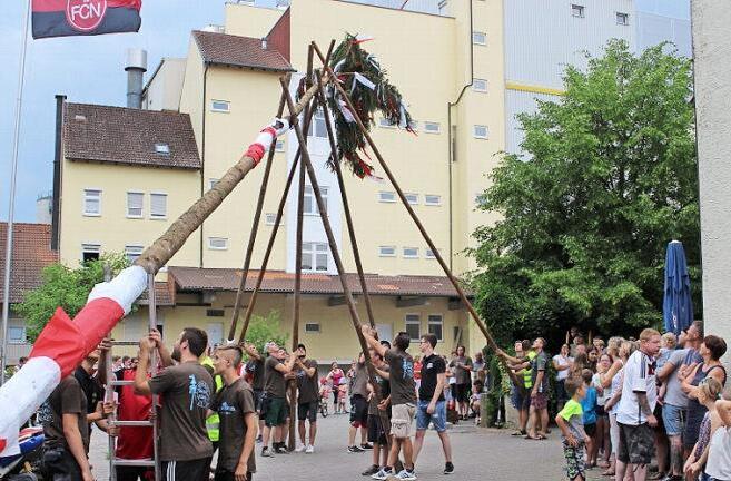 Die Blaskapelle Zentbechhofen, die den Kirchweihzug anführte, begleitete auch beim Aufstellen die lustigen, mitunter auch deftigen Kerwaslieder. Wie üblich, wurden oft die Nachbarorte, aber auch die Gemeindeväter aufs Korn genommen. Viele Sambacher und Kirchweihbesucher ließen sich das traditionell fränkische Spektakel nicht entgehen. Der weitere Samstagabend gehörte dann der Jugend. Im Saal der Gastwirtsfamilie Wagner/Wiesneth und im Umgriff wurde zur Musik von DJ Kunner bis in die frühen Morgenstunden Party gefeiert.
