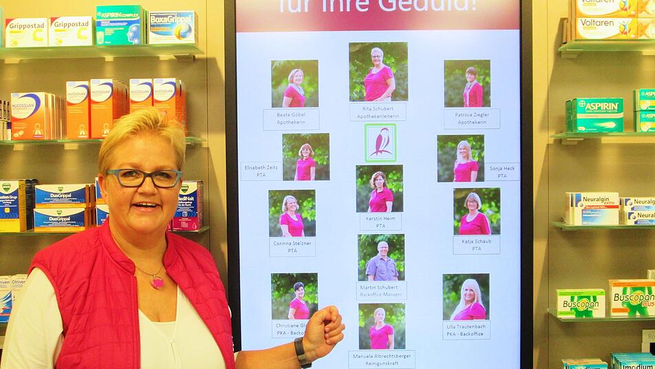 Zwei Jahre danach wurde Rita Schubert Inhaberin der Falken Apotheke. Sie absolvierte 1995 ein Pharmaziestudium, approbierte, war zunächst in zwei Schweinfurter Apotheken tätig und kam dann als Apothekerin in die Saalestadt.